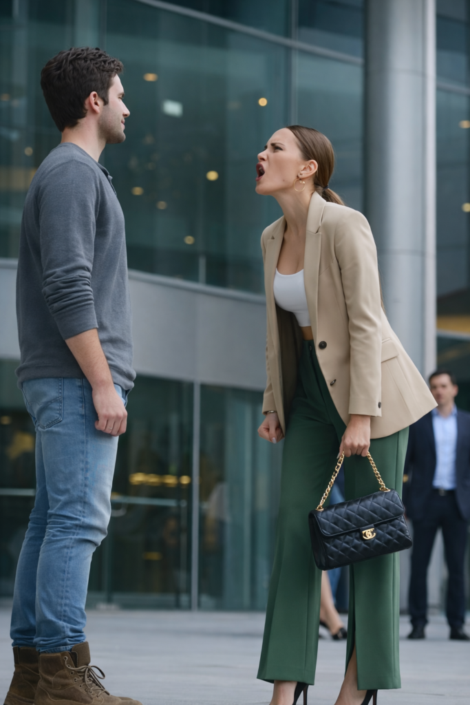 lara caminaba apurada frente a un moderno edificio corporativo. Vestía elegante, con tacones altos y un bolso caro. Estaba esperando a un importante ingeniero con quien tendría una reunión de negocios.